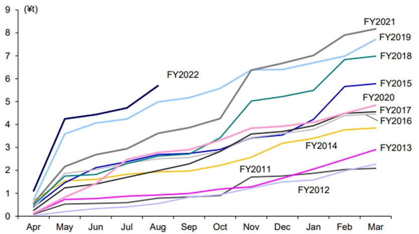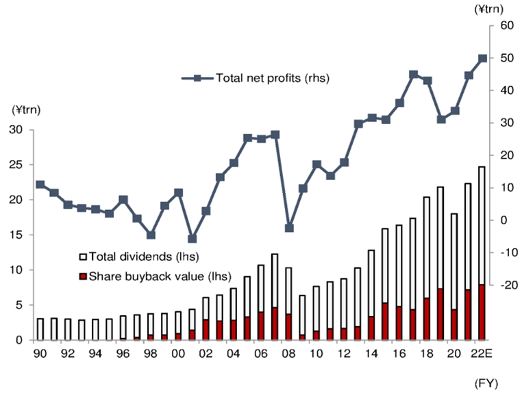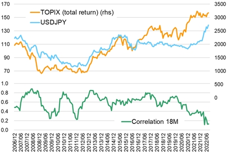 - TOPIX and JPY less correlated than previously, but weak JPY helps corporate profits.