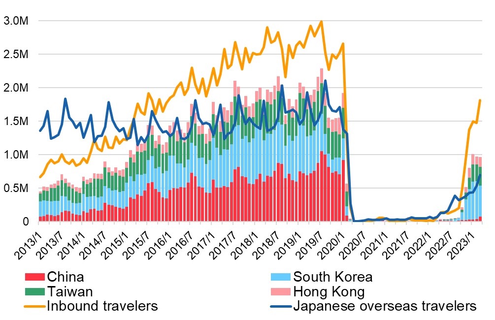 The latest data available shows visitor arrivals in Japan so far this year down some 40% against the historic highs of 2019, but after three years of Covid restrictions, it looks like a number of industries have reason for optimism. See our deep dive on inbound tourism to Japan from July 2022 for more details.