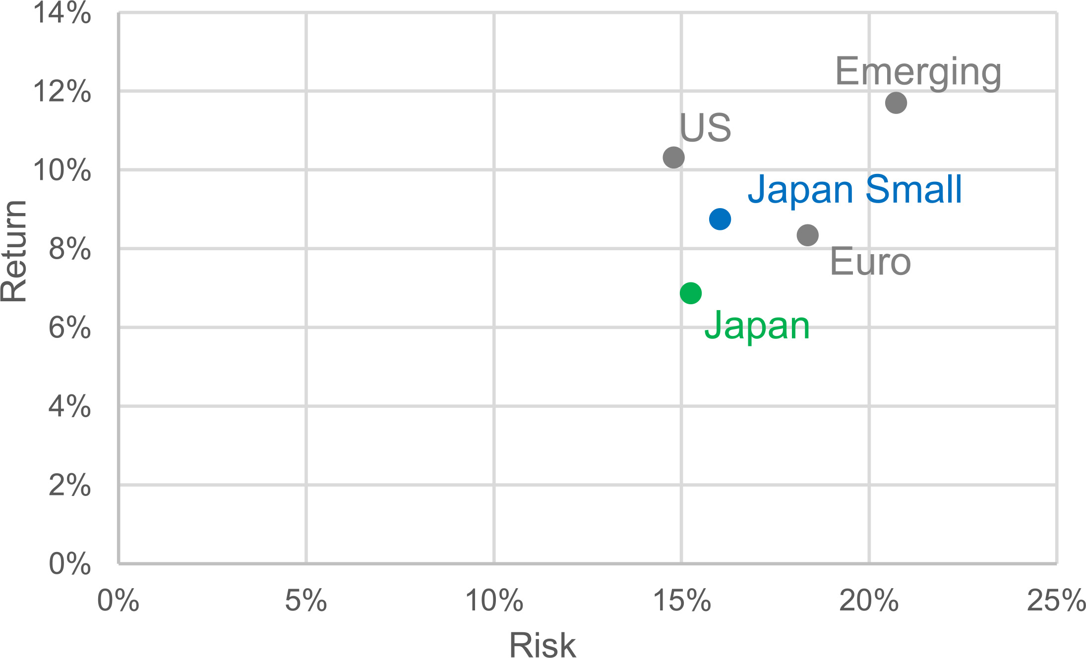 Figure 1: Japanese small caps offer an attractive risk/return profile