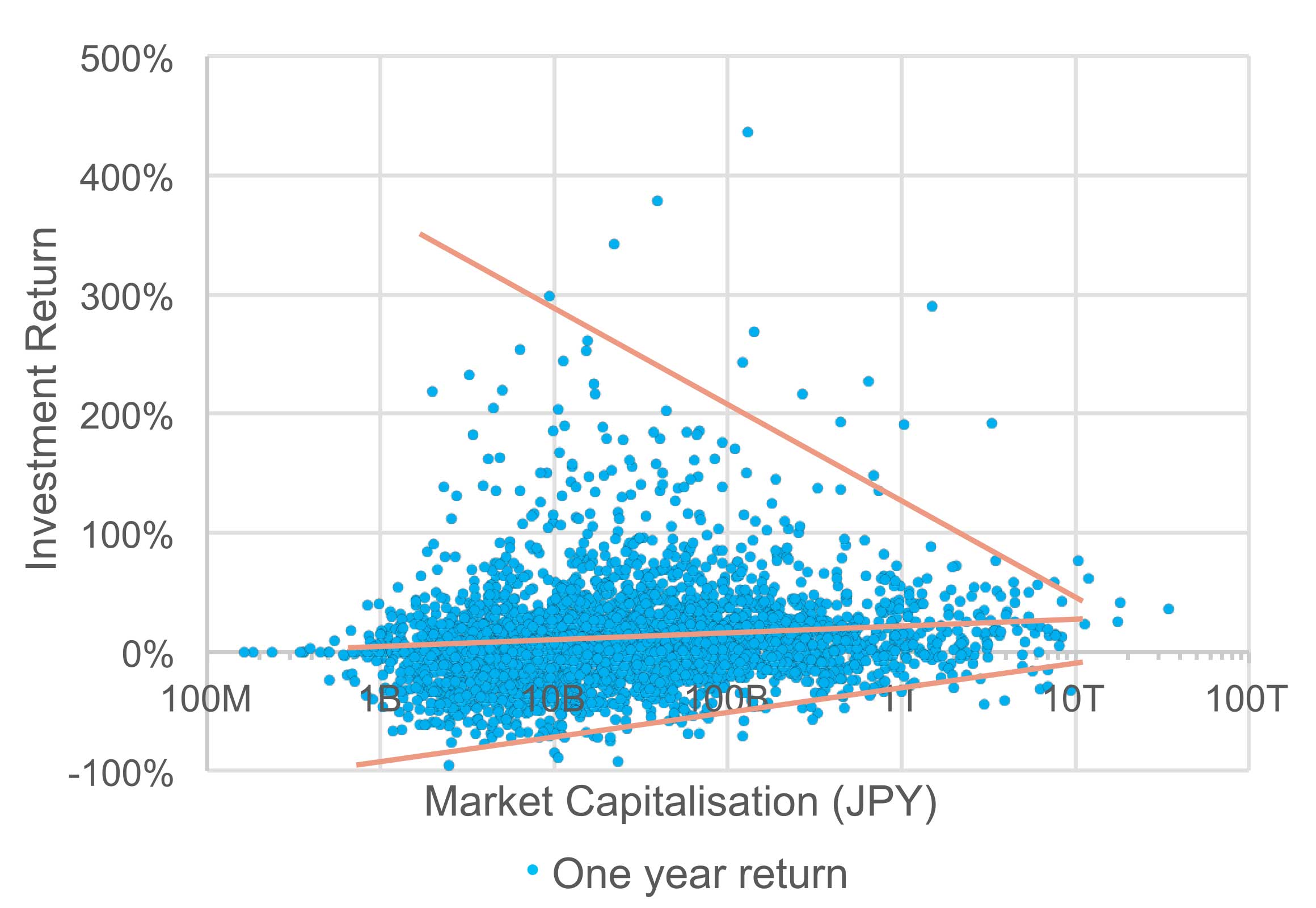 Return dispersion relative to market cap (2021). Source: MSCI Barra. Past performance is not an indication of future returns.