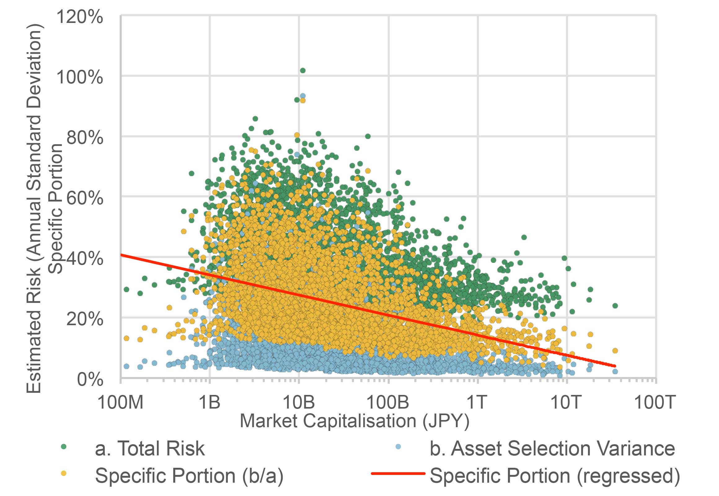 Stock-specific risk not explained by common market or industry factors, relative to market cap (as at December 2021).